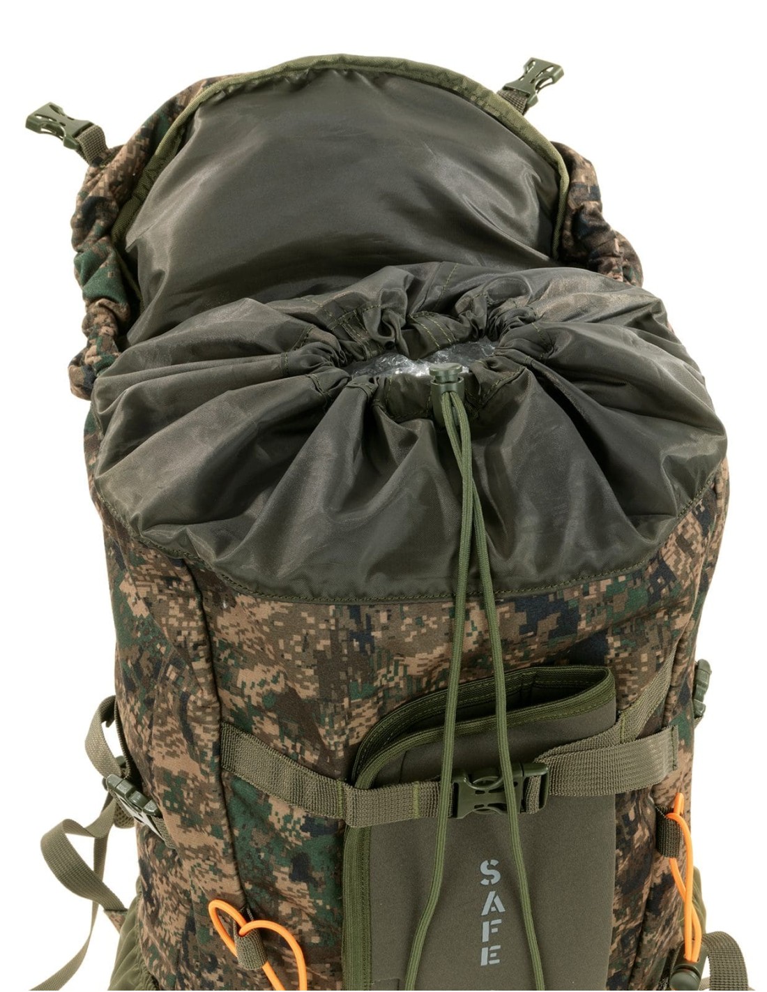 Регулируемые плечевые ремни со скользящим нагрудным ремнем с аварийным свистком и плотным поясным ремнем на талии. Оснащен удобной системой крепления винтовки спереди: регулируемым нижним карманом и выдвижной сумкой для надежного удержания и регулировки приклада винтовки, а также центральной передней частью из неопрена Safe Guard, которая надежно обхватывает предплечья винтовки и оптический прицел и закрепляет их в наилучшем положении.